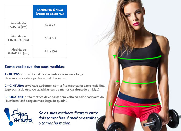 Esta peça foi modelada como TAMANHO ÚNICO, ou seja, atende bem do manequim 38 ao 42 devido à modelagem e elasticidade do tecido.