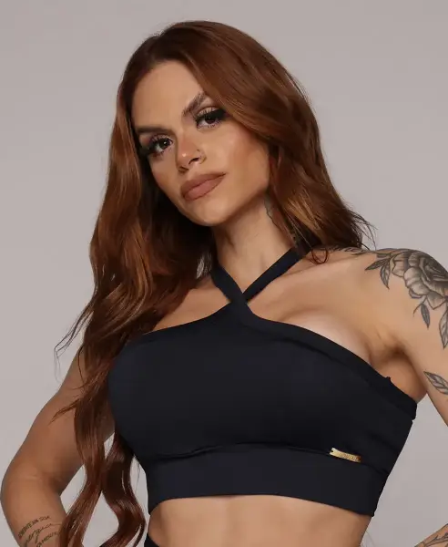 Top fitness Milano Twist com Elástico Preto Absoluto