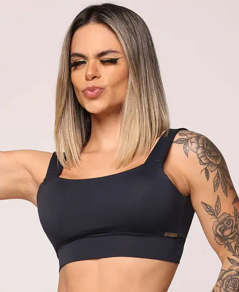 Top Faixa Preto com Bojo Removível