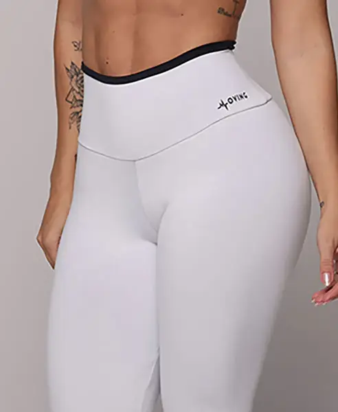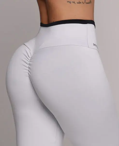 Calça Legging Empina Bumbum Cós Bicolor Blackout Branco