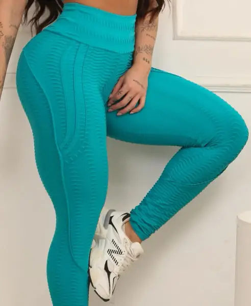 Calça Legging Empina Bumbum Coração Brocada Verde Jade