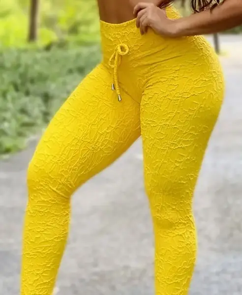 Calça Legging de Jacquard Coconut Empina Bumbum Amarelo Sol