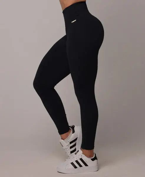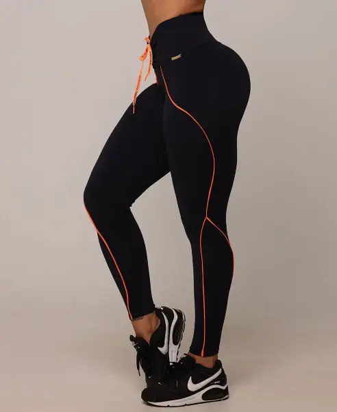 Calça Legging Linear Empina Bumbum Preta com Laranja Neon