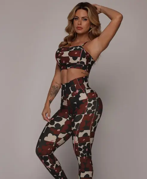 Conjunto Top Florença Choco e Legging Empina Bumbum de...
