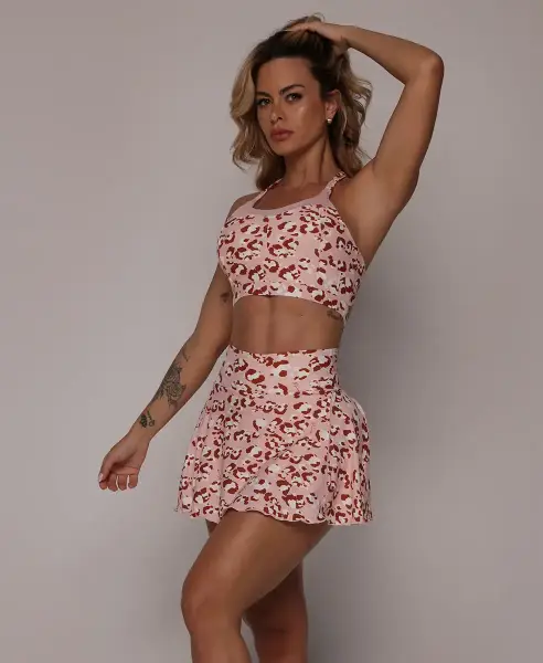 Conjunto de Top Los Angeles e Short-Saia Fitness Felina (1...