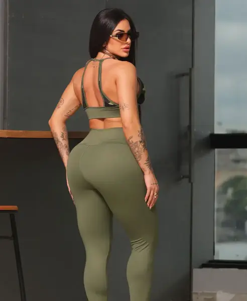 Conjunto de Top Seattle Verde Mostarda e Legging Empina...