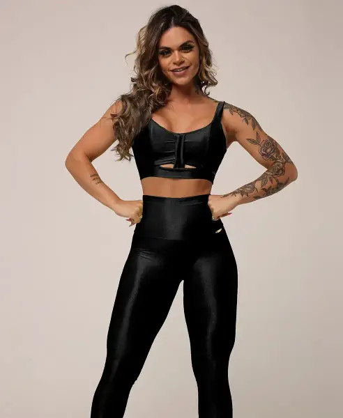 Conjunto Top Ravena e Legging Tradicional Glossy Preta (1...