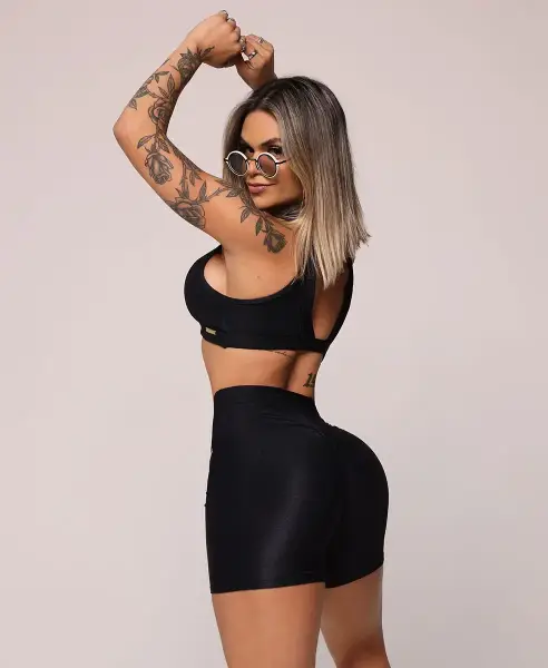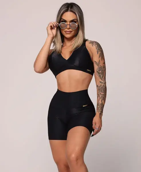 Conjunto Top Egeo e Short Fitness Empina Bumbum Glossy Preto...