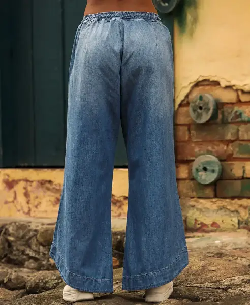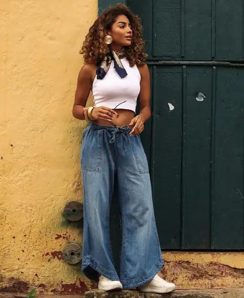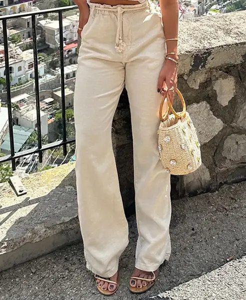 Calça em Linho Wide Leg Clochard com Cordão