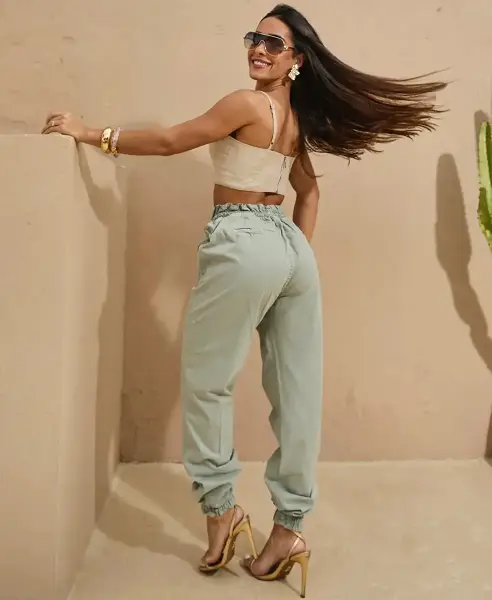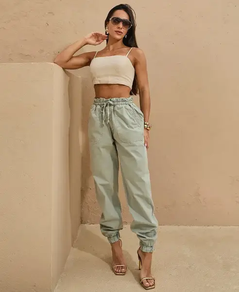 Calça Jogger em Sarja com Cintura Média