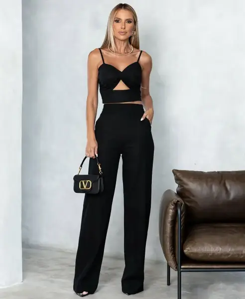 Conjunto Bretanha Preto (1 cropped + 1 calça)