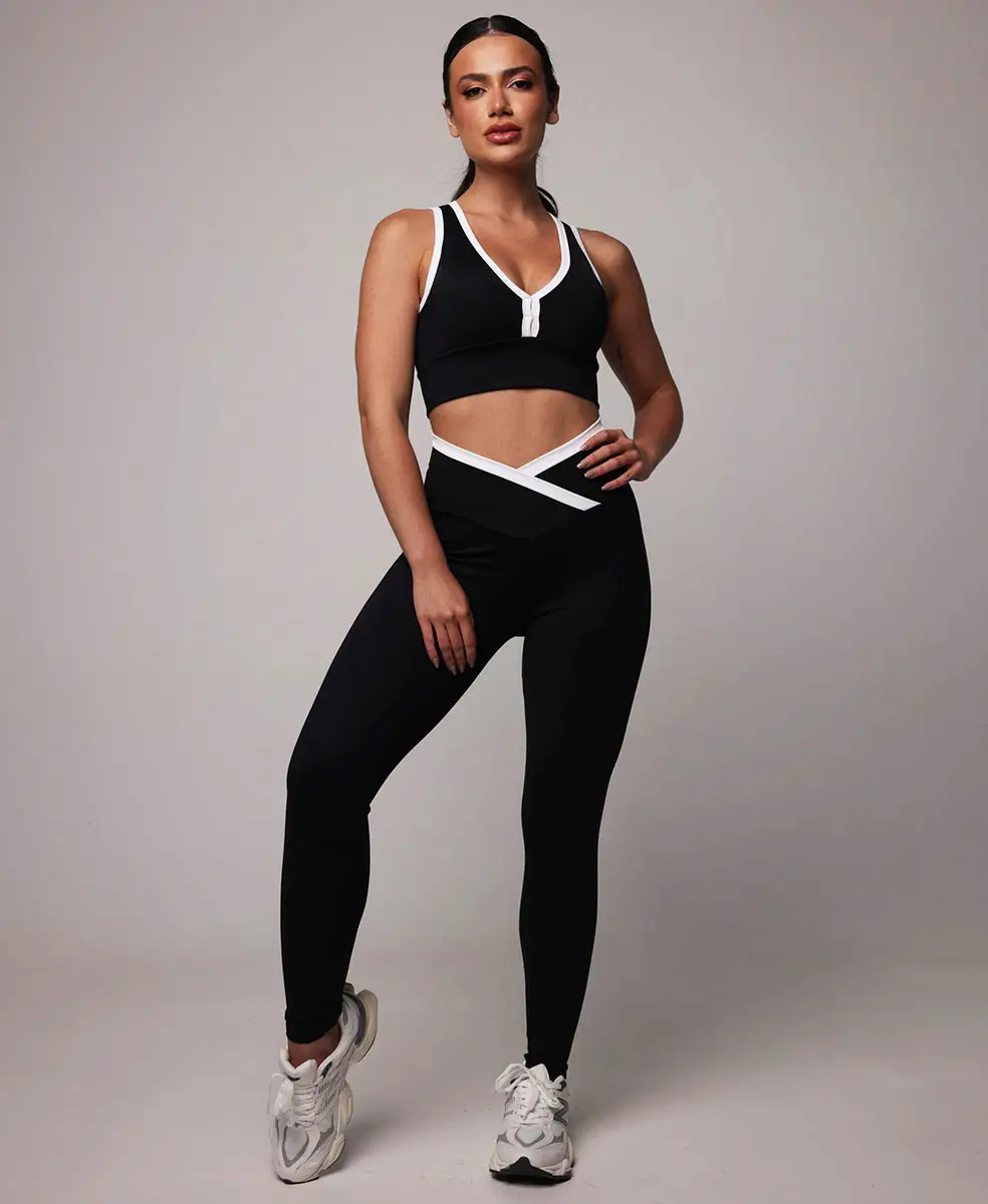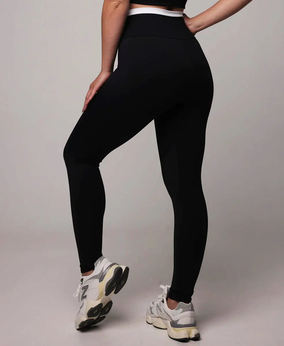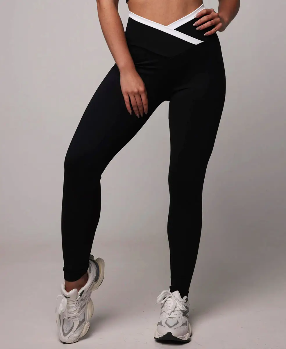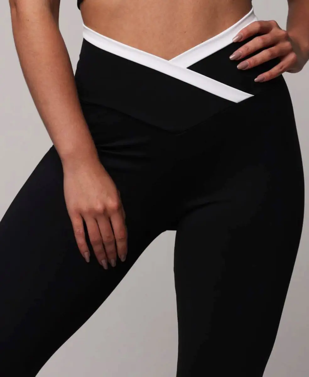 Calça Legging Crossover Slim Tradicional Preta com Branco