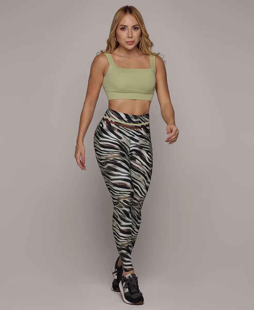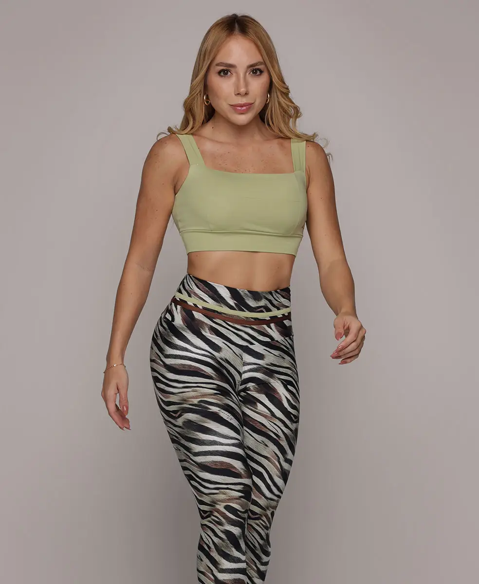 Conjunto de Top Iris Pistache e Legging Empina Bumbum Masai (1 top + 1 legging)