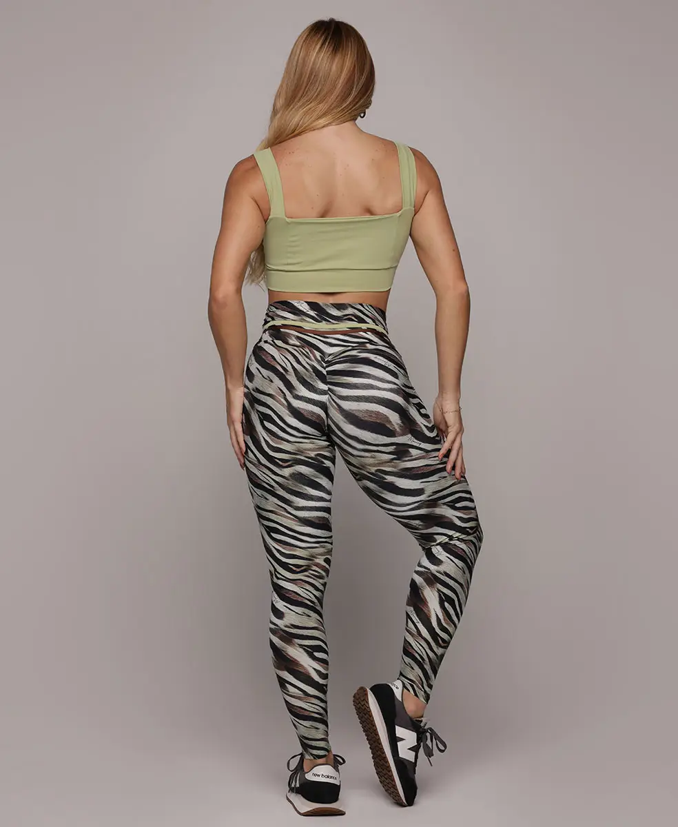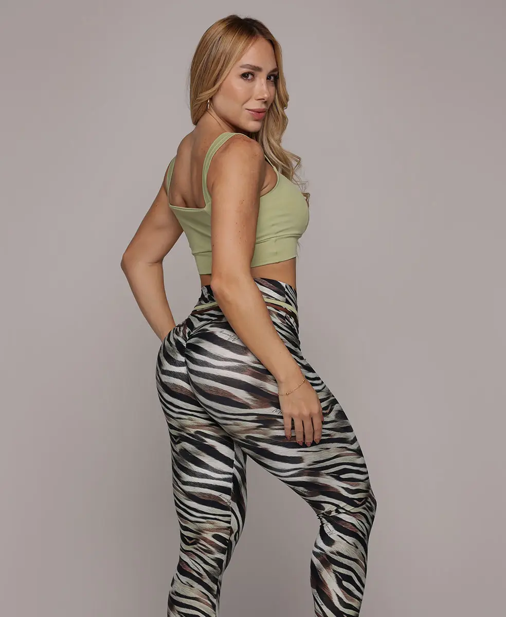 Cintura alta, detalhe estiloso na cintura e aquele efeito que valoriza suas curvas A Legging Empina Bumbum foi feita para realçar seu corpo com conforto e feminilidade. A modelagem com cintura alta e cós duplo com duas faixas horizontais, ajuda a comprimir levemente a região abdominal, definindo a cintura e oferecendo segurança durante o movimento. O charme principal da peça está no franzido no bumbum, que cria o famoso efeito “empina”, valorizando suas curvas de forma natural e sensual. A estampa animal print, em tons de marrom e preto, é sofisticada e poderosa, perfeita para quem gosta de se destacar sem abrir mão da versatilidade. Confeccionada em tecido leve, macio, de toque geladinho, com elasticidade multidirecional e proteção UV 50+ para treinar ao ar livre com segurança.